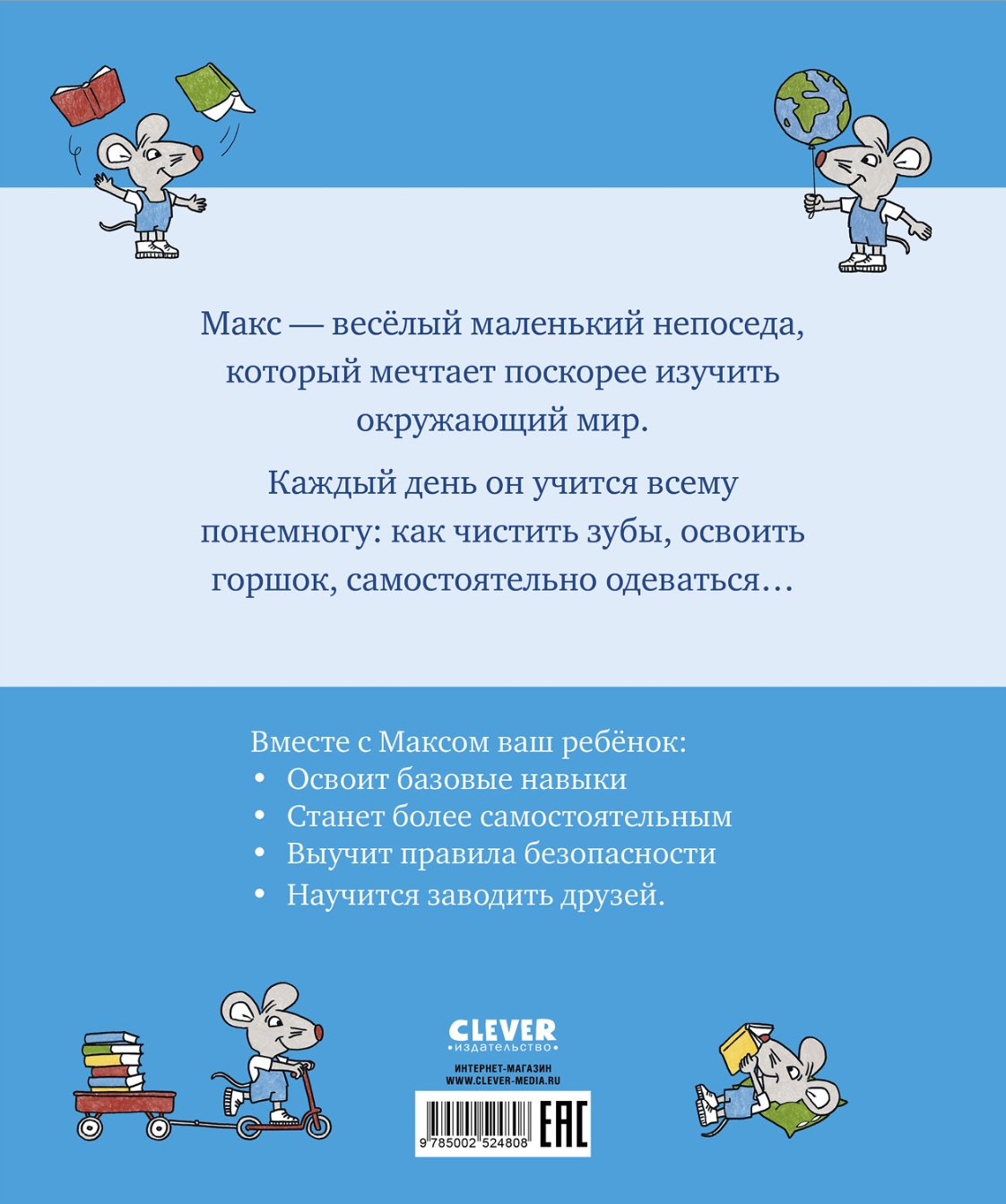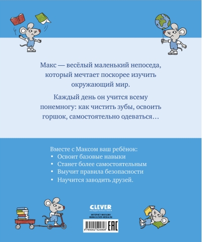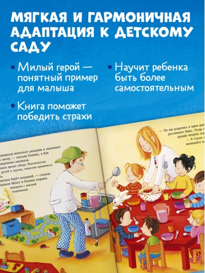 Вместе с героями Clever книги — Максом и его подружкой Полиной ребенок отправится в группу, узнает, куда нужно складывать свои вещи и сменную обувь, как ребята обедают и спят в садике, какие приключения и интересные занятия ждут их во время гуляния.