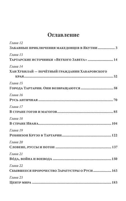 Современная версия отечественной истории полна умолчаний, несоответствий и противоречивых утверждений. Все чаще к такому выводу приходят независимые исследователи, пытаясь сопоставить события прошлого с имеющимися источниками и новыми открытиями. В адрес официальной исторической науки обращено много вопросов, но ответов на них пока нет. И будут ли они вообще — неизвестно. Перед вами книга, в которой автор проливает свет на факты, дающие новые знания о происхождении, культуре, месте и роли предков русского народа в мире. Рассказывает о том, что было на территории современной России в те далекие времена, которые наука называет античностью. Приводит убедительные доказательства из области лингвистики, географии, этнографии, культуры, климата, флоры и фауны. Ставит под сомнение существование «татаро-монгольского ига», вековой зависимости Руси от «Хазарского каганата» и называет причины, по которым появилась именно такая трактовка исторических событий XIII — XV веков. Рассматривает личность Тамерлана, который оказал влияние на формирование целой эпохи. Раскрывает мотивы ключевых политических процессов, происходивших в последние два столетия: «бунты» Степана Разина и Емельяна Пугачёва, Отечественная война 1812 года, Крымская, Туркестанская и Первая мировая войны. Никто не скрывает факты, но чтобы исказить ход истории, достаточно умолчать там, где невыгодно озвучивать, и преувеличить ценность событий, которые не имели принципиального значения. Пусть эта книга сподвигнет Вас на то, чтобы самостоятельно искать ответы на вопросы, а не ждать их от официальной исторической науки.