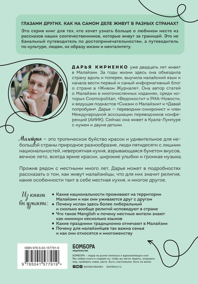 Малайзия – удивительная и многогранная страна. Природное разнообразие, невероятное количество национальностей, необычная кухня, буйство красок и улыбок – тропическая сказка для обывателя. Какие секреты она скрывает? Дарья Кириенко уже двадцать лет живет в Малайзии, ведет подкасты и блог о стране в «Живом Журнале», является автором многочисленных информативных статей. Именно она лучше других расскажет о том, как живут в стране вечного лета, что для малазийцев значит религия, в чем особенность их истории, культуры, менталитета и быта.