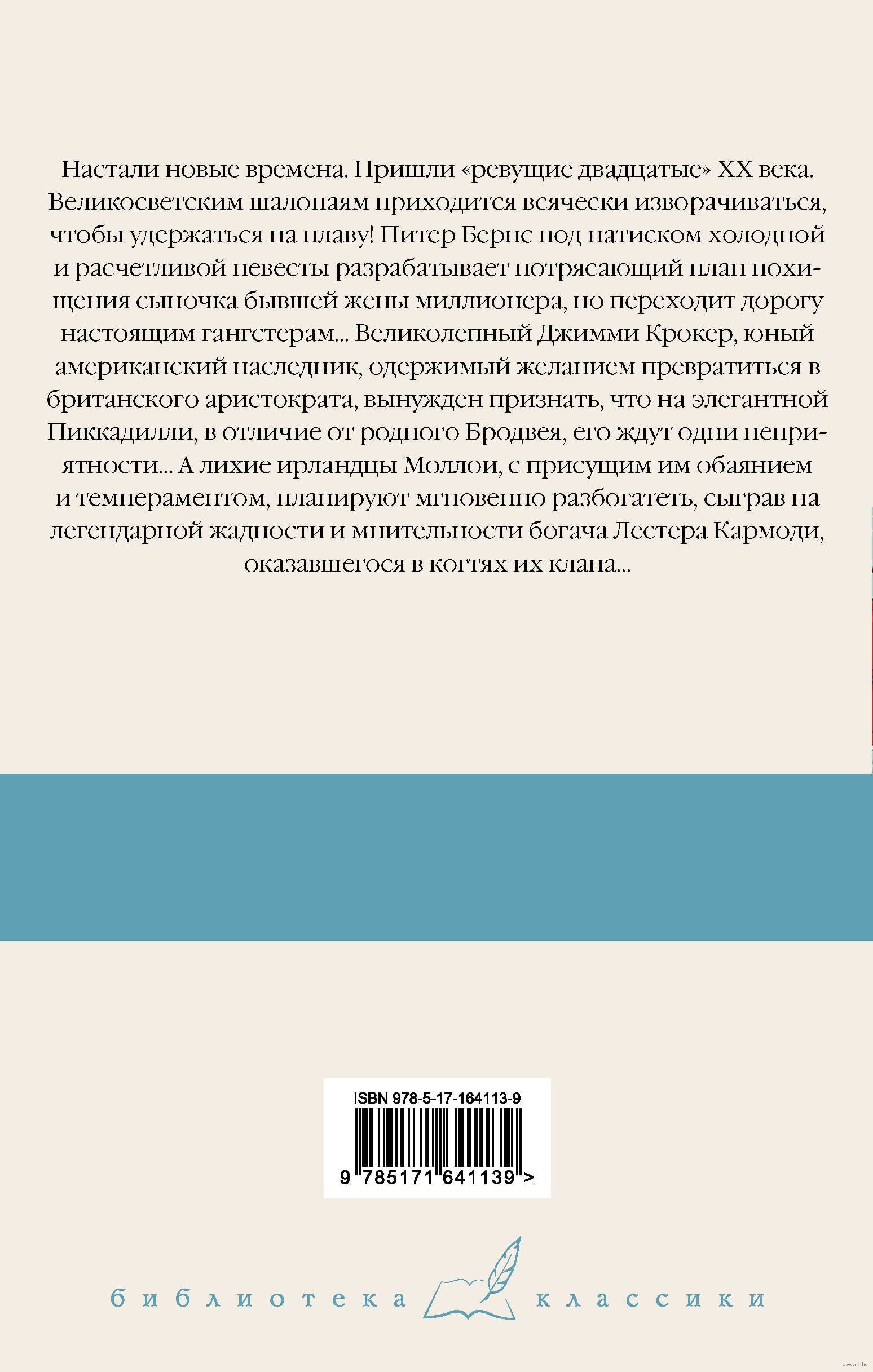 Настали новые времена. Пришли «ревущие двадцатые» XX века. Великосветским шалопаям приходится всячески изворачиваться, чтобы удержаться на плаву! Питер Бернс под натиском холодной и расчетливой невесты разрабатывает потрясающий план похищения сыночка бывшей жены миллионера, но переходит дорогу настоящим гангстерам… Великолепный Джимми Крокер, юный американский наследник, одержимый желанием превратиться в британского аристократа, вынужден признать, что на элегантной Пиккадилли, в отличие от родного Бродвея, его ждут одни неприятности… А лихие ирландцы Моллои, с присущим им обаянием и темпераментом, планируют мгновенно разбогатеть, сыграв на легендарной жадности и мнительности богача Лестера Кармоди, оказавшегося в когтях их клана…