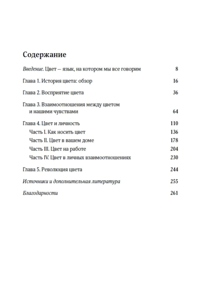 Цвета, которые нас окружают, заряжены эмоциональной энергией. Цвет завораживает, вдохновляет и незаметно меняет нашу жизнь. Рассказывая о природной силе цвета, о его физических основах, о его воздействии на наши эмоции, эта книга поможет вам самостоятельно выбрать дорогу к изменению цветового окружения и добиться нужного настроя, чтобы стать счастливее и успешнее. Несложные тесты позволят определить цвета, которые вам подходят. Внимательно изучите свои цветовые предпочтения – и вместе с красноречивыми воспоминаниями вы вызовете к жизни яркие чувства, и та радость, которую дарит цвет, наполнит новым смыслом все, с чем вы соприкасаетесь. «Я изучаю цвет и работаю с ним уже более двадцати лет. Сотрудничаю с архитекторами, дизайнерами интерьера, проектировщиками, стилистами. Исследую, какие мысли и чувства он вызывает, как с его помощью мы можем сделать свою жизнь лучше. Я поделюсь с вами всем, чему научилась. Мы познакомимся с наукой о цвете и с историей цвета. Я покажу вам, как действует цвет, как связать его с личными воспоминаниями, продемонстрирую силу его символизма и его влияния на наши мысли, на самые сокровенные чувства, на наше поведение. Вы узнаете, как использовать цвет для укрепления уверенности в себе и для самовыражения; цвет поможет вам добиться успехов во всех жизненных сферах — начиная с вашей спальни и заканчивая заседанием совета директоров. Пусть эта книга станет для вас библией цвета, которая всегда под рукой, чтобы в нее можно было заглянуть в любой момент и почерпнуть вдохновение и знания, чтобы подобрать одежду, внести красоту и гармонию в помещение, сосредоточиться на работе и получить от нее удовольствие, улучшить отношения с людьми или просто поднять настроение». (Карен Халлер)