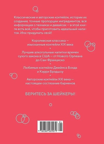В этом путеводителе по миру барной культуры собраны лучшие рецепты коктейлей из разных стран и эпох. Но это не всё: в нем вы найдете ответы на вопросы — например какую посуду и оборудование использовать, как выбрать хороший алкоголь, а главное — какие техники приготовления нужно знать, чтобы достичь идеального результата? Для наглядности в книге представлены пошаговые фотографии работы с барными девайсами и иллюстрации готовых коктейлей. А чтобы ваш опыт стал по-настоящему незабываемым, путеводитель расскажет небольшие истории создания культовых напитков. Поехали!