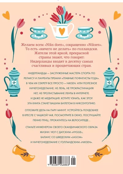 Нидерланды — одна из самых счастливых стран в Европе и в мире. Важная составляющая счастья и душевного здоровья голландцев — никсен, или искусство ничегонеделания. Этот «секрет национального счастья» глубоко укоренен в нидерландской культуре, но освоить его может каждый, независимо от этнической принадлежности, языка и места проживания. Для этого не требуется никаких вложений: вам не придется ничего покупать, менять себя, перестраивать свой дом, обновлять гардероб, учиться медитировать или садиться на диету. Все, что нужно, — ничего не делать! Чтобы разгадать загадку никсена, журналист, писатель и переводчик Ольга Меккинг провела всесторонние исследования, пообщалась с самыми разными экспертами — психологами, социологами, коучами, историками, культурологами, а также с самими голландцами и с теми, кто переехал в Нидерланды из других стран и осваивает национальные традиции на месте. В результате у нее получилась остроумная и практичная книга, предлагающая действенные инструменты для решения ежедневных проблем и улучшения качества жизни здесь и сейчас. Даже если вы очень занятой человек и ваши дни расписаны по минутам, Меккинг покажет, как находить время на никсен дома, на работе, в дороге, и поможет не только научиться расслабляться и отпускать лишнее, но и стать счастливее, здоровее и продуктивнее.