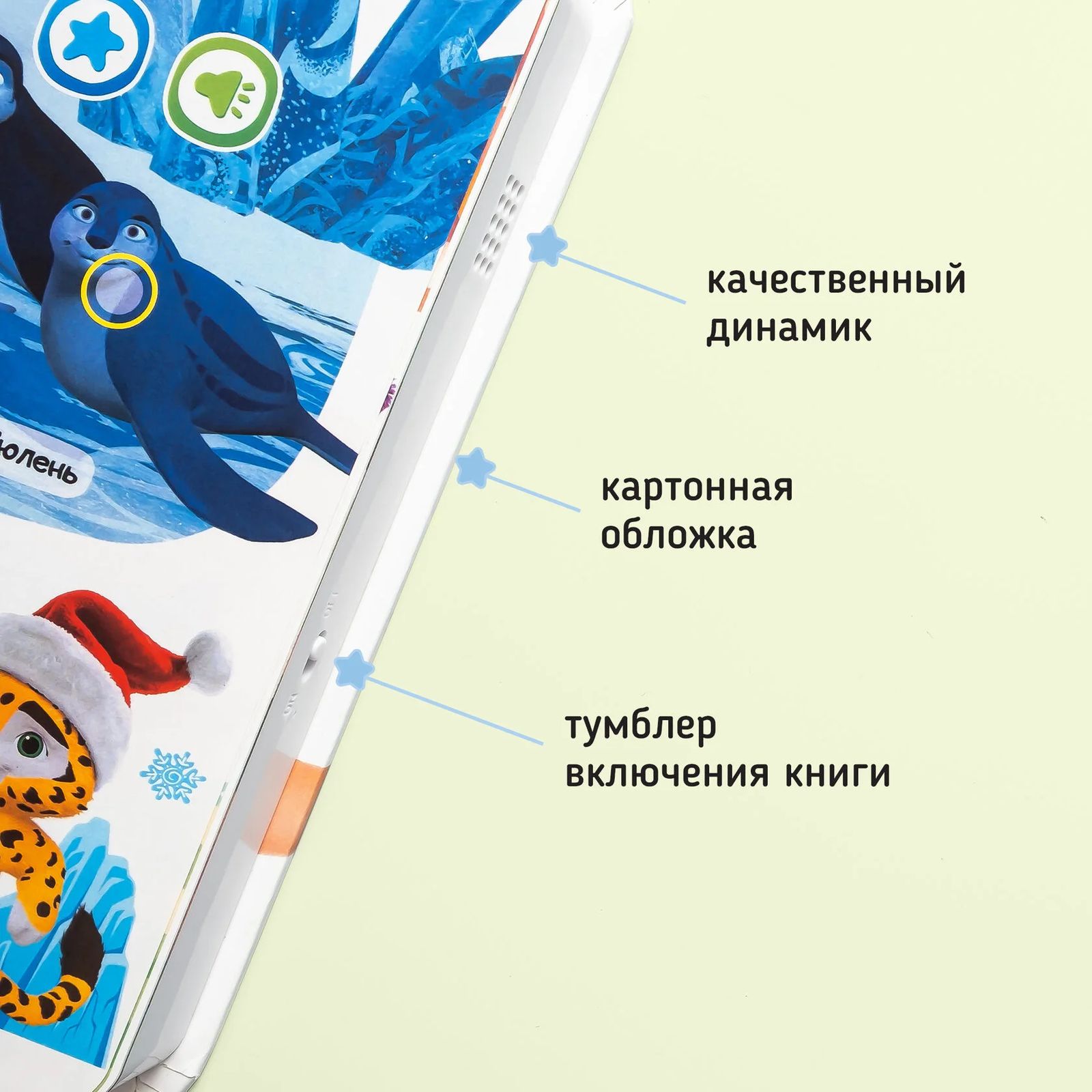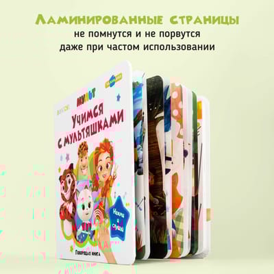 Говорящая интерактивная книга «Учимся с мультяшками». Самая первая энциклопедия для малышей. Очень компактная: удобно брать с собой. Нажимай пальчиком на страницы и картинки оживут!