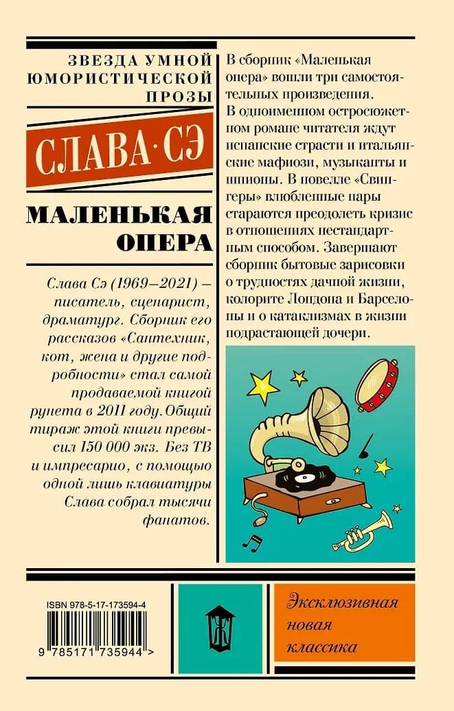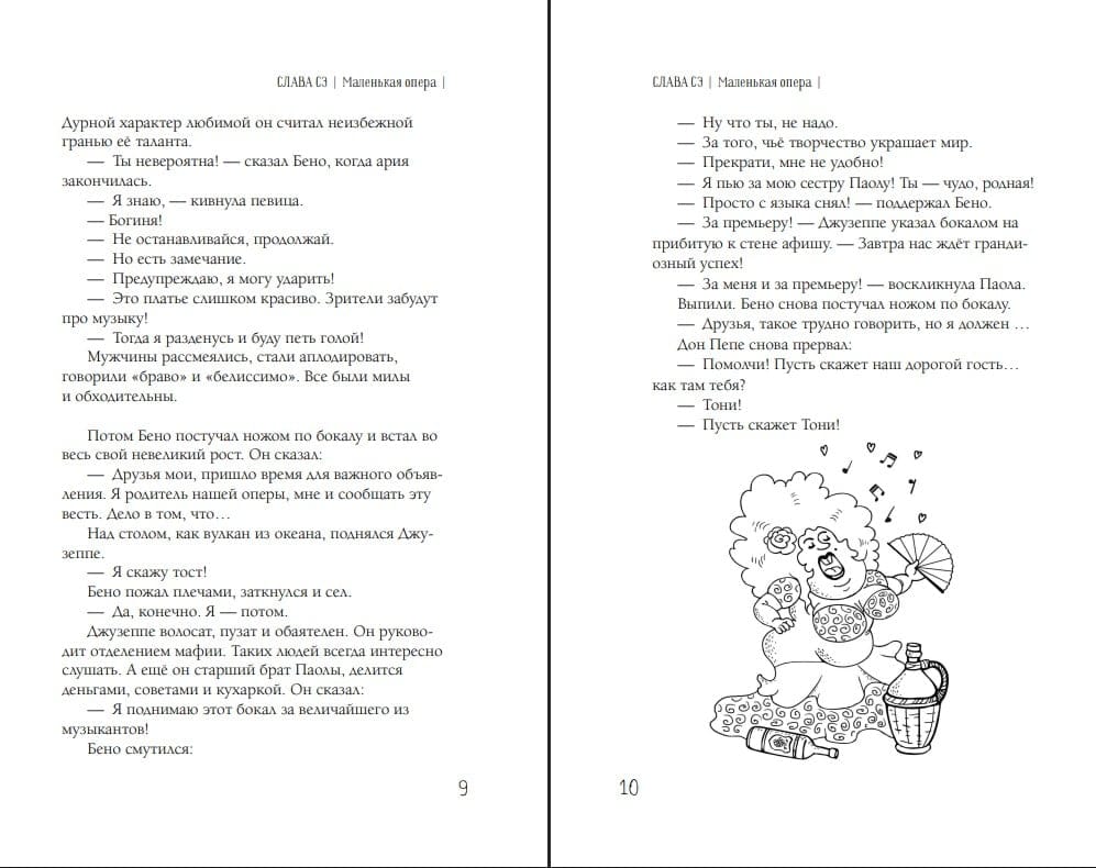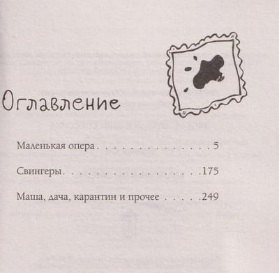 В сборник «Маленькая опера» вошли три самостоятельных произведения. В одноименном остросюжетном романе читателя ждут испанские страсти и итальянские мафиози, музыканты и шпионы. В новелле «Свингеры» влюбленные пары стараются преодолеть кризис в отношениях нестандартным способом. Завершают сборник бытовые зарисовки о трудностях дачной жизни, колорите Лондона и Барселоны и о катаклизмах в жизни подрастающей дочери.