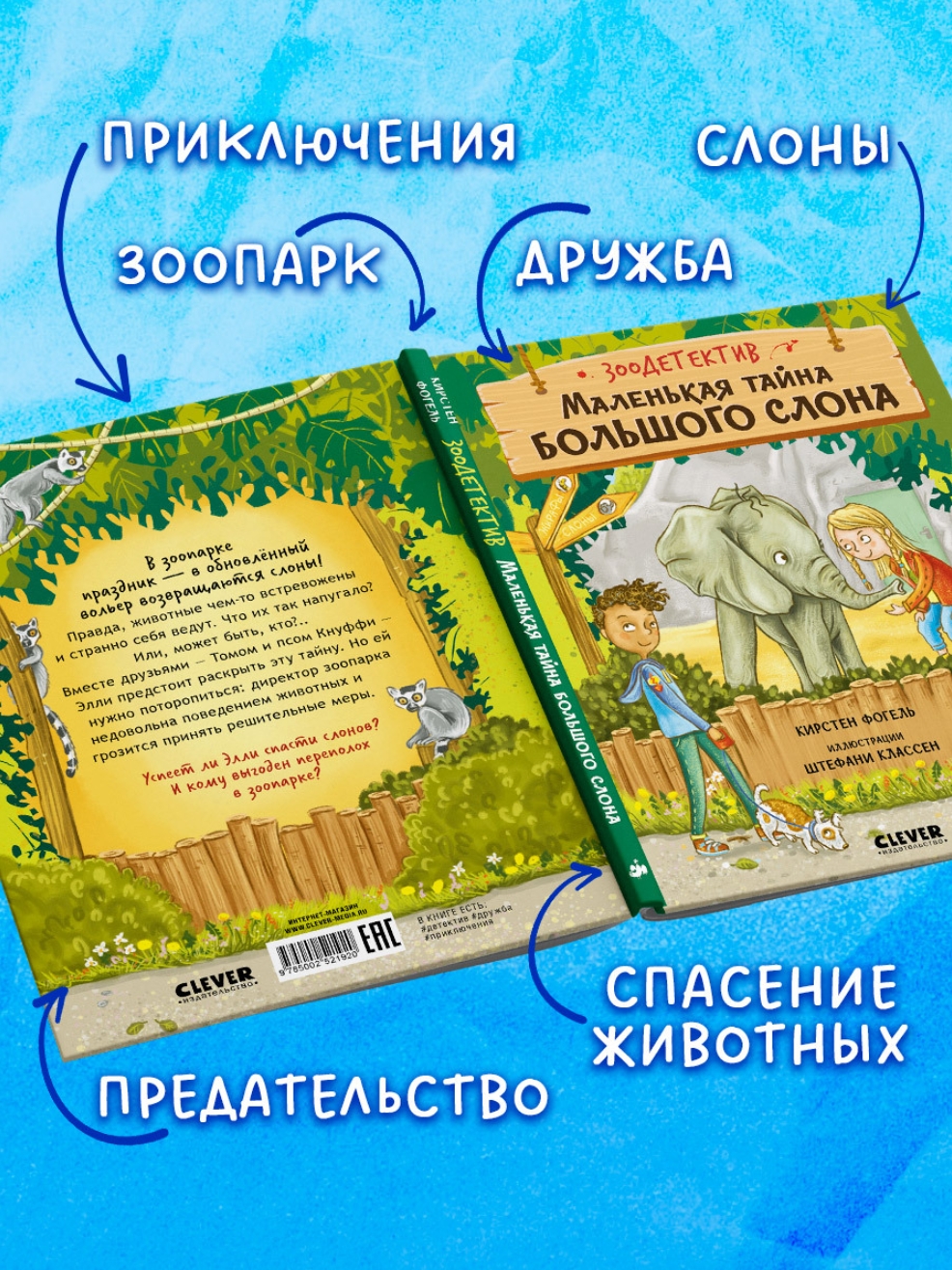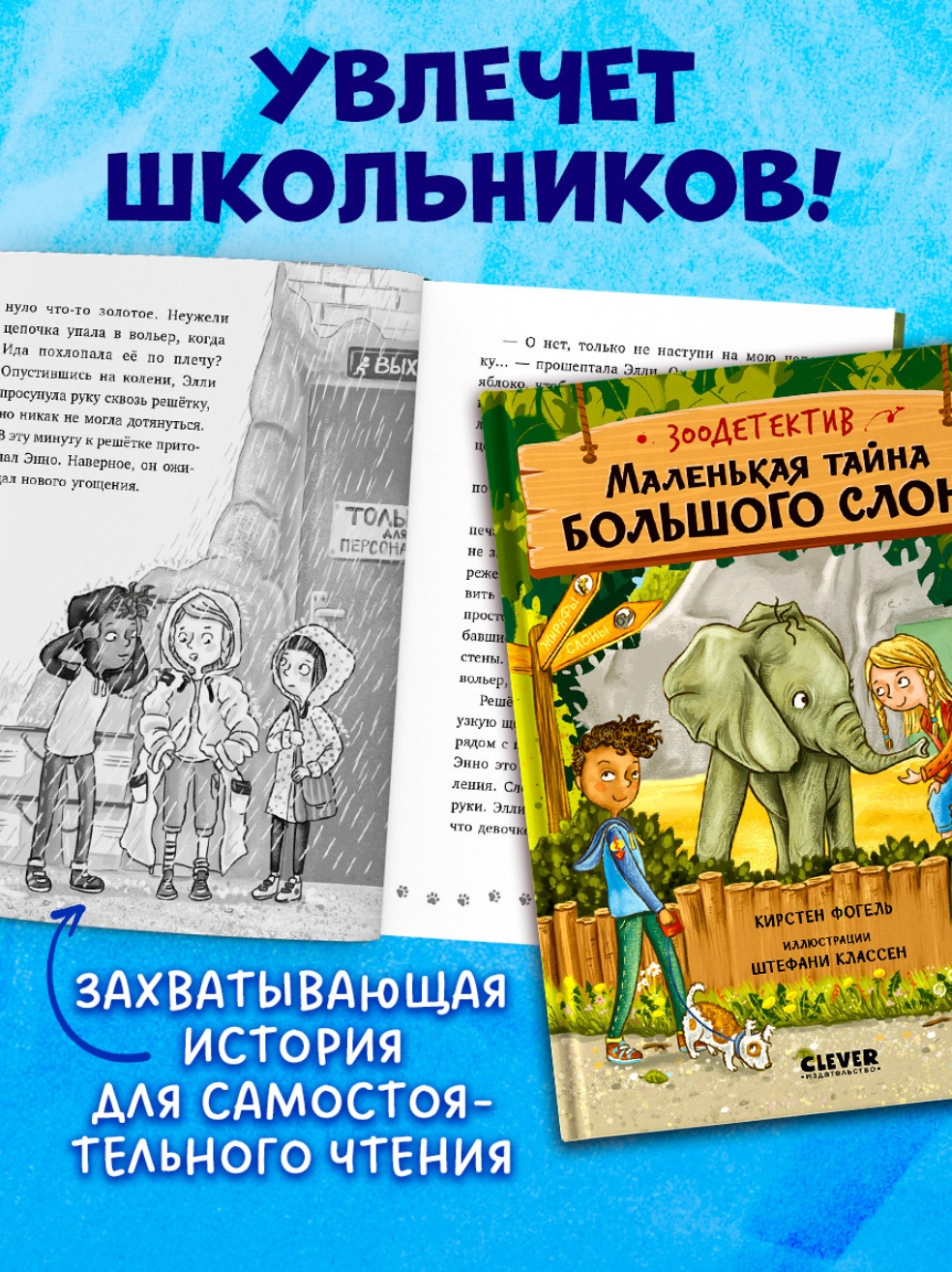 «Маленькая тайна большого слона» — удивительно добрая книга для школьников о дружбе, о взаимопомощи, о благородстве и любви к животным. Элли, дочка ветеринаров зоопарка и друг всех животных, радуется, что к ним в обновленный вольер возвращаются слоны. Но с большой слонихой что-то не так. Она ведет себя странно, в зоопарке начинается беспорядок, и директор грозится принять меры. Элли предстоит спасти слонов — разгадать тайну и выяснить, кому выгодно устроить переполох в зоопарке, кто напугал животных?