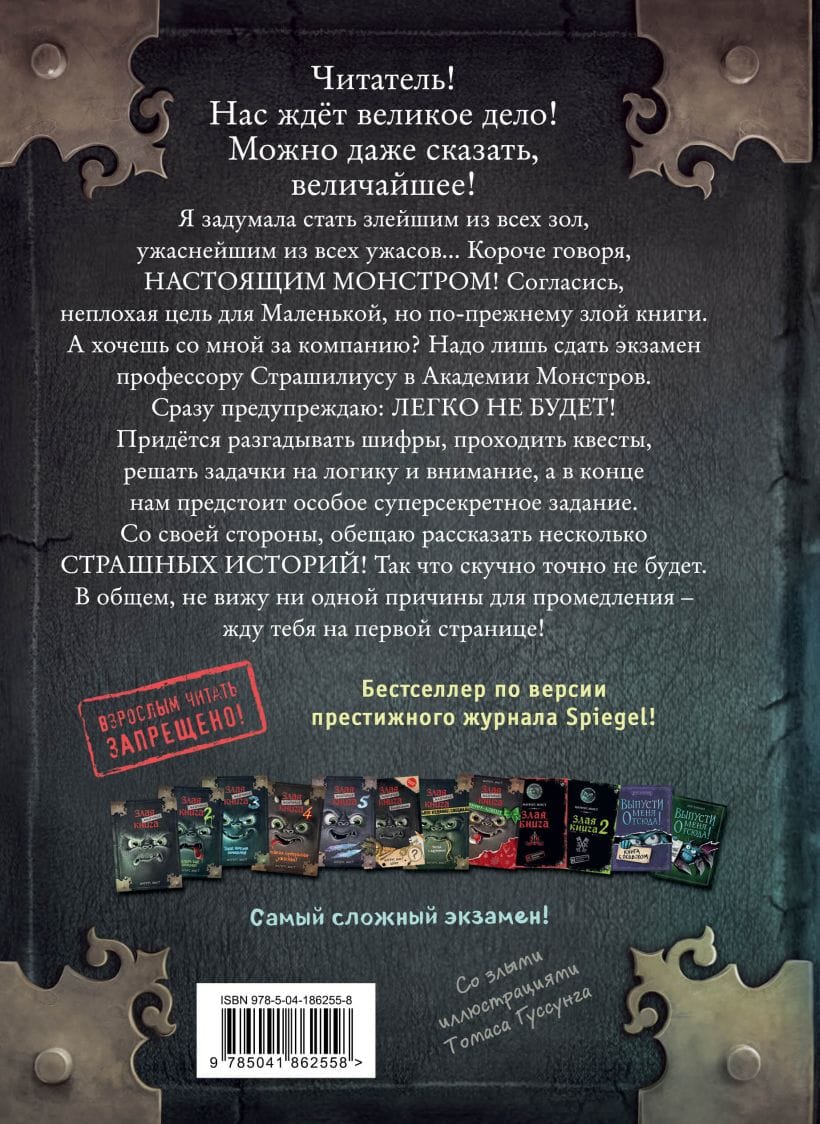 Плох тот солдат, который не хочет стать генералом. А «Маленькая злая книга» — которая не хочет стать просто «Злой книгой». Или хотя бы монстром. Для начала. Но не всё так просто: нужно выдержать 5 испытаний на знание монстроведения.