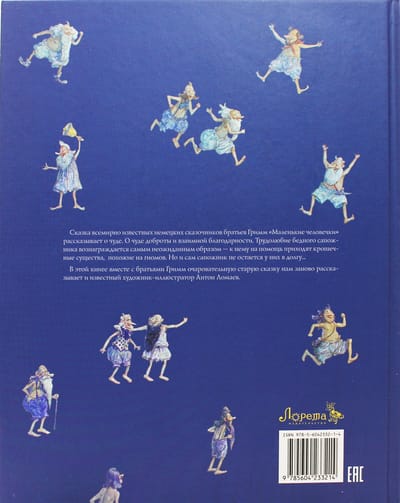 Сказка всемирно известных немецких сказочников братьев Гримм «Маленькие человечки» рассказывает о чуде. О чуде доброты и взаимной благодарности. Трудолюбие бедного сапожника вознаграждается самым неожиданным образом — к нему на помощь приходят крошечные существа, похожие на гномов. Но и сам сапожник не остается у них в долгу... В этой книге вместе с братьями Гримм очаровательную старую сказку нам заново рассказывает известный художник-иллюстратор Антон Ломаев.