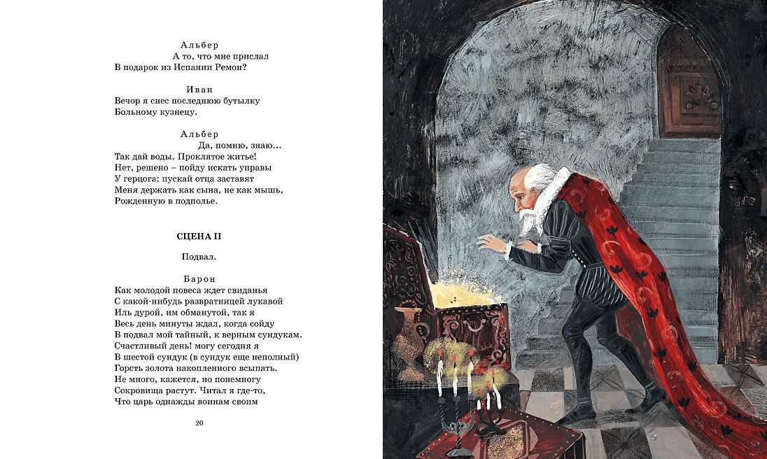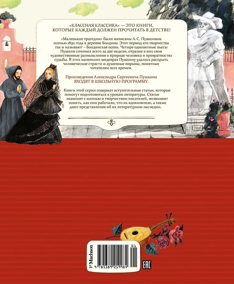 «Маленькие трагедии» были написаны А. С. Пушкиным осенью 1830 года в деревне Болдино. Этот период его творчества так и называют – Болдинская осень. Четыре одноактные пьесы Пушкин сочинил всего за две недели, отразив в них свои художественные размышления о природе человека и превратностях судьбы. В этих маленьких шедеврах Пушкину удалось раскрыть человеческие страсти и душевные порывы, понятные читателям всех времен.
