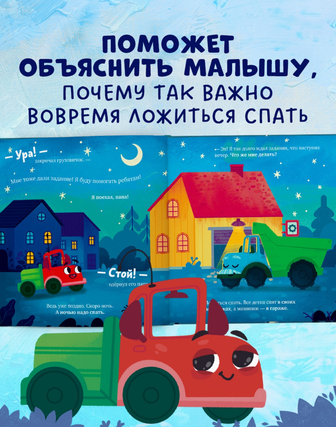 История про малыша-грузовичка поможет детям понять, почему так важно ложиться спать вовремя и отдыхать ночью.