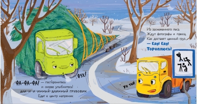 Маленькому читателю понравятся простые и понятные стихи с безупречными рифмами, очень яркие и новогодние иллюстрации. А еще можно научиться «говорить», как машины, развивая речь, — вжж-вжж, бип-бип, р-рам, р-рам! И конечно, с новогодним настроением можно вместе с малышом мусоровозом готовиться к празднику!