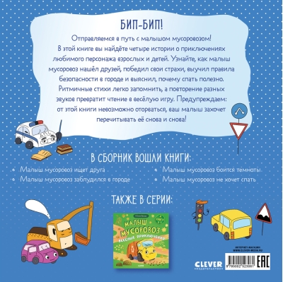 В красивом большом подарочном сборнике «Малыш мусоровоз. Сонные истории» вас ждут четыре сказки для малышей о любимом герое всех детей — маленьком мусоровозе. Вы узнаете, как малыш мусоровоз нашёл друзей, как он победил свои страхи, выучил правила безопасности в городе и выяснил, почему спать — полезно.