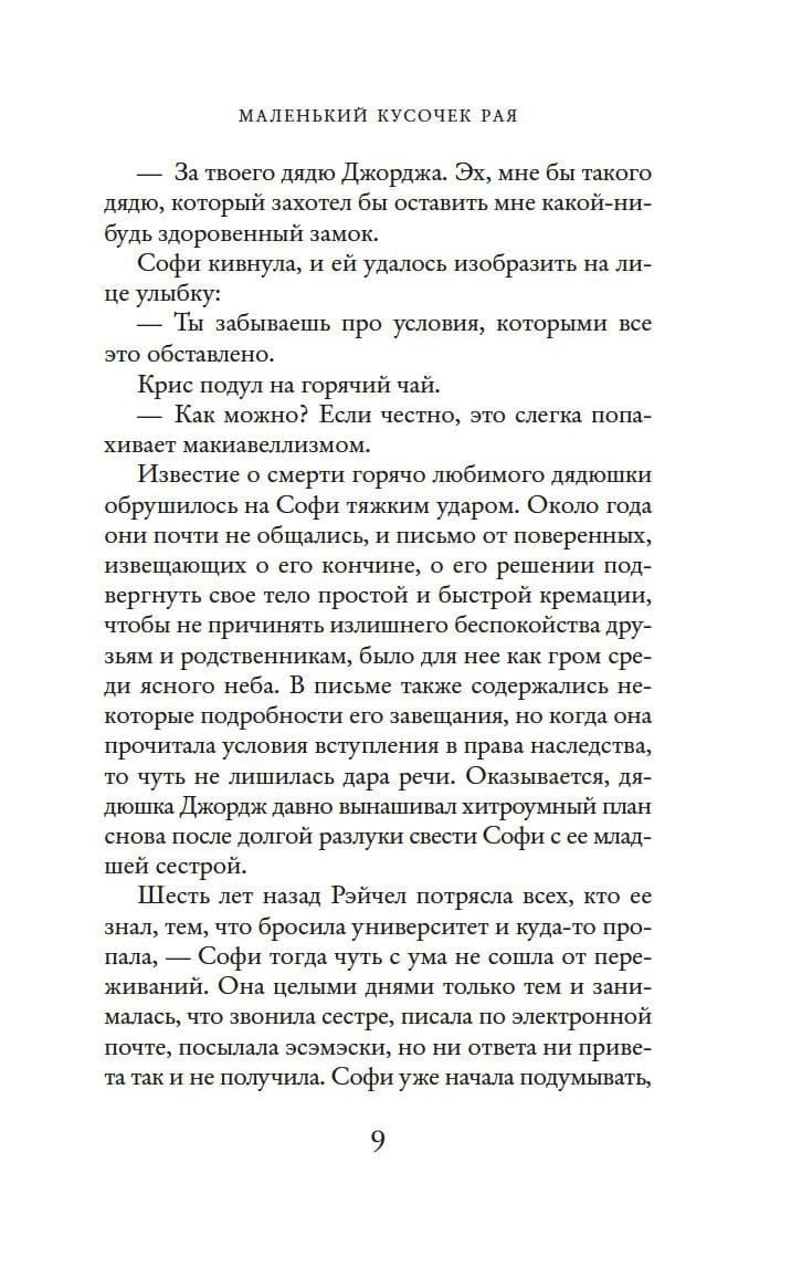 Получив в наследство от дяди настоящий замок на Итальянской Ривьере, Софи не верит своему счастью. При этом в завещании есть любопытный пункт: прежде чем вступить в права владения, Софи должна прожить в замке три месяца вместе со своей сестрой Рэйчел. Когда-то отношения между ними дали трещину. Удастся ли вернуть прежнее доверие, или по истечении указанного в завещании срока каждая пойдет по жизни своим путем? Впрочем, Софи в любом случае рада покинуть хмурый Лондон и снова оказаться в солнечной Италии, где когда-то провела четыре года, хотя возвращение наряду с прекрасными воспоминаниями пробуждает и горечь... Ей хотелось бы навсегда забыть о человеке, который предал ее, однако вот он, тут как тут! Кроме того, разве расстояние помеха любви? Разве разлука не укрепляет чувства? И да, чувства вспыхивают, только... к другому. Вдруг обнаруживается, что этот другой мужчина значит для Софи больше, чем просто хороший друг. Но как узнать, взаимно ли это?.. Впервые на русском!
