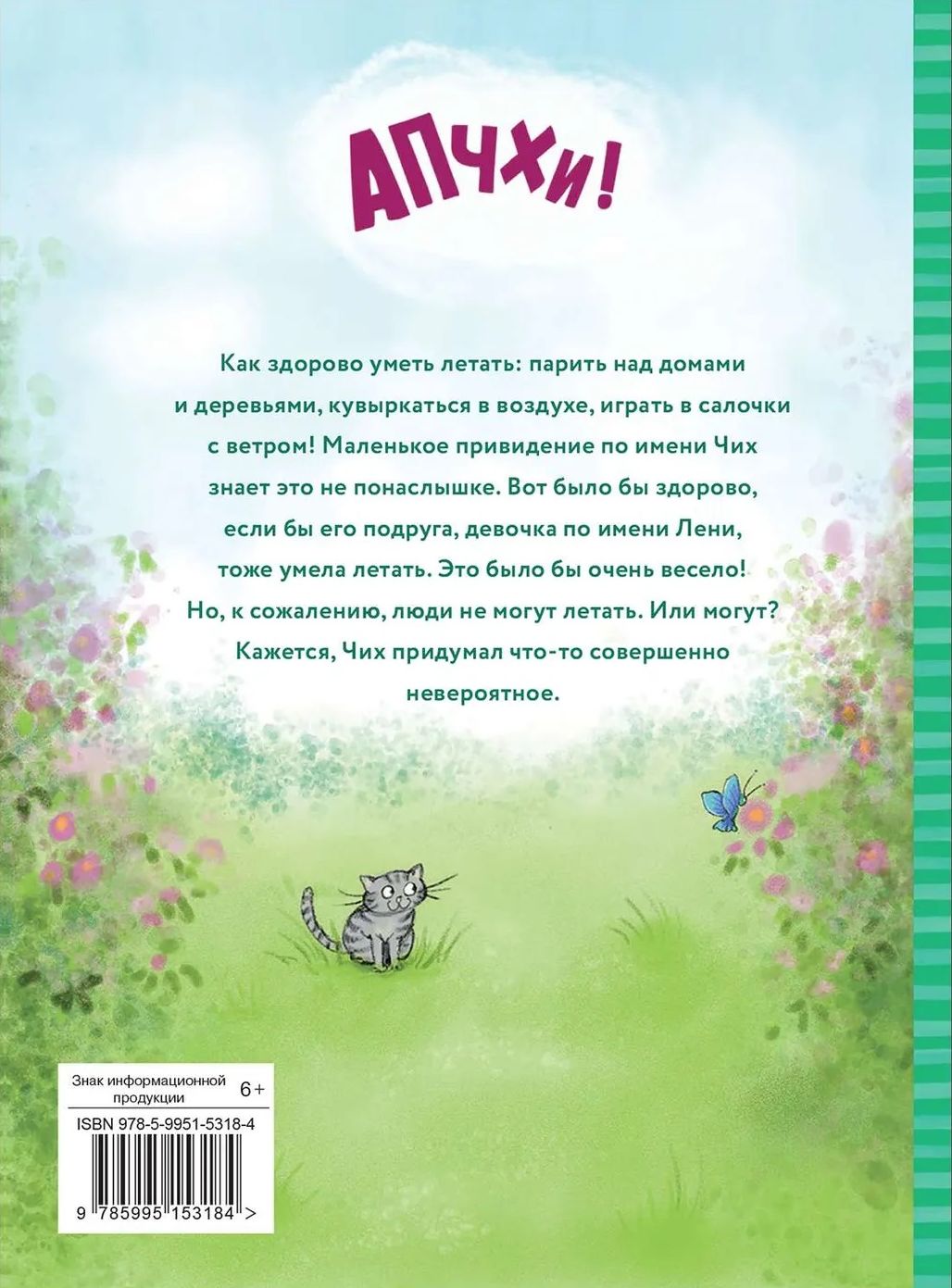 Как здорово уметь летать: парить над деревьями, кувыркаться в воздухе, играть в салочки с ветром! Маленькое привидение по имени Чих знает об этом не по наслышке. Вот было бы здорово, если его подруга, девочка по имени Лени, тоже умела летать. Это было бы очень весело! Но, к сожалению, люди не могут летать. Или могут? Кажется, Чих придумал что-то совершенно невероятное!