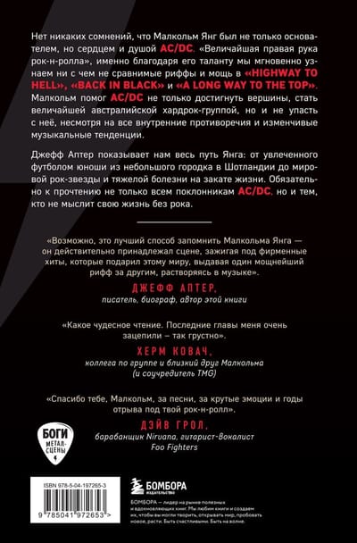 Это первая биография, посвященная исключительно Малкольму Янгу и рассказывающая захватывающую историю его замечательного пути от рабочего в Глазго и общежития для мигрантов в Сиднее до выступлений на крупнейших сценах мира и тяжелой, трагичной болезни на закате жизни.