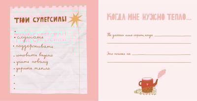 - Письмо маме на целый разворот, «три слова о тебе», «мамины суперсилы».