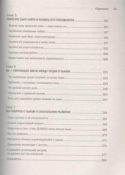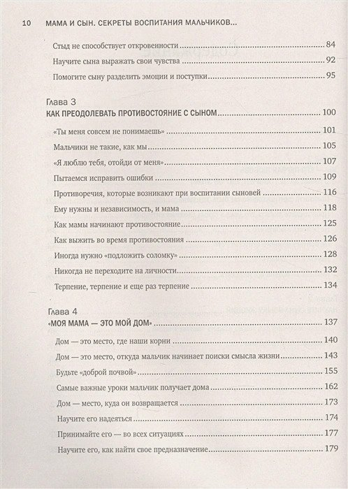 Книга делает акцент на самых главных вопросах в жизни мамы и сына. Любовь и поддержка, забота и независимость, противостояния и конфликты — всем этим темам уделено самое пристальное внимание. Отдельно автор говорит о том, как включить отца в воспитательный процесс, как уберечь подростка от опасностей, связанных с сексом, как обеспечить ребенку мужское внимание, если он растет без отца. Доверительная интонация Мэг Микер располагает читателя к автору, а множество примеров из жизни помогает лучше усвоить полезные и мудрые советы.