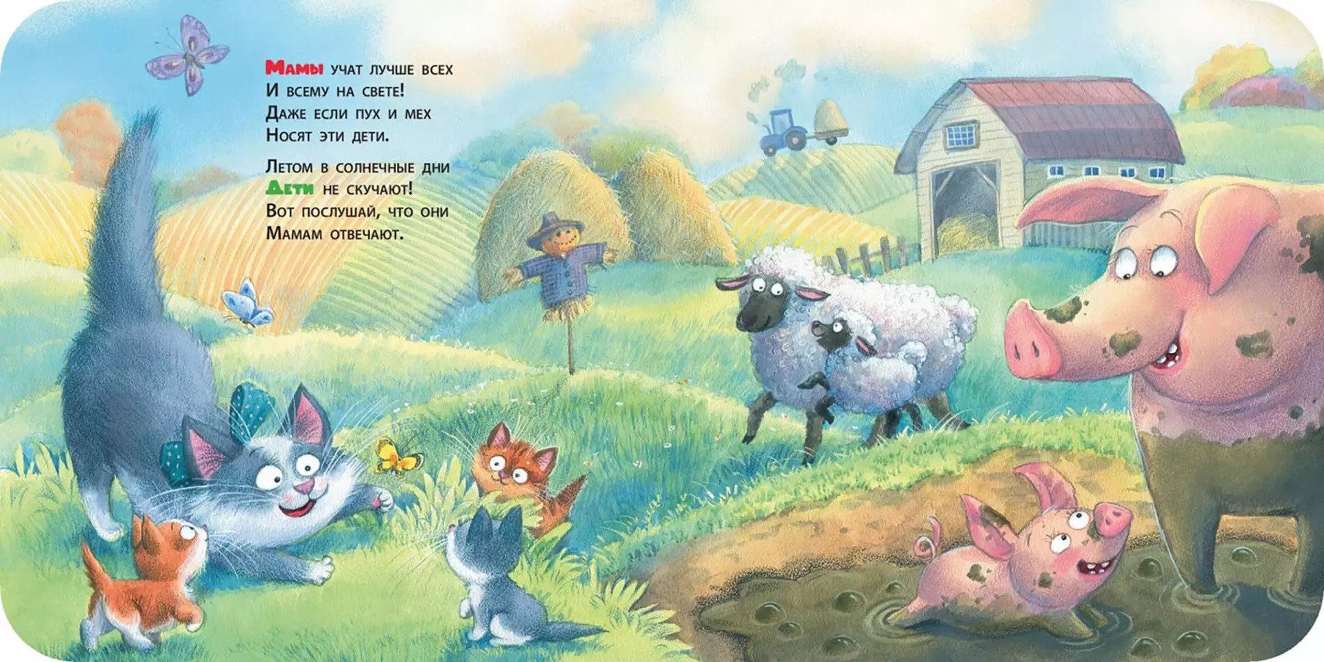 Все мамы очень любят своих малышей. А еще они учат их всему на свете! Как же они это делают? Что они говорят своим любимым деткам? И что отвечают детки своим мамам? Забавные и нежные стихи Сергея Еремеева поведают маленьким читателям, как разговаривают разные животные. А веселые, озорные рисунки Любови Ерёминой-Ношин покажут, как проходят такие уроки! Книга напечатана на плотном картоне. Для чтения взрослыми детям.