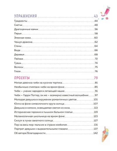 - информация о построении фигуры и рисовании черт лица в стиле классической и чиби-манги;