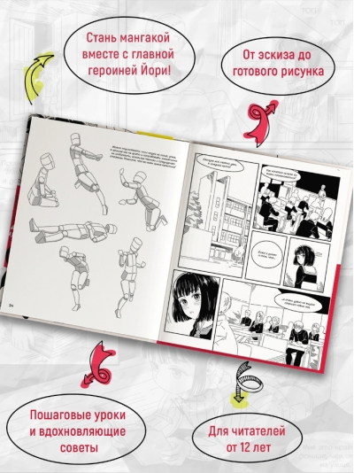 Особенность книги в том, что ты не только будешь учиться рисовать, но и прочтёшь мангу о девочке Йори, которая, как и ты, обожает комиксы и мечтает стать известной художницей. История Йори, полная взлётов и падений, поддержит тебя на всём твоём творческом пути!