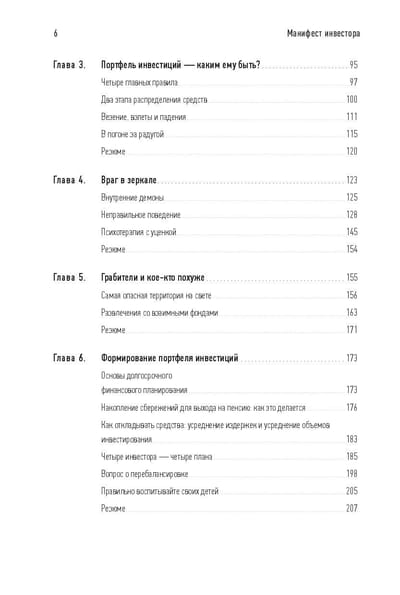 Об основах инвестирования и планирования портфеля. Главное, что пытается донести автор до читателей, заключается в рекомендации никогда не забывать о том, что обвалы рынка случаются. Именно поэтому важно выстраивать долгосрочную (да что там греха таить — и краткосрочную) стратегию таким образом, чтобы они не стали неожиданностью.  Понятный толковый язык, который не нужно переводить с финансового на более доступный для восприятия. Нет голословных наставлений из области искусства инвестирования: лишь советы, как заранее уменьшить вероятный ущерб. Инвестирование — игра и борьба одновременно, как их совмещать? Чем опаснее финансовая ситуация, тем больше доходов она сулит: правила поведения инвесторов в кризисных ситуациях.