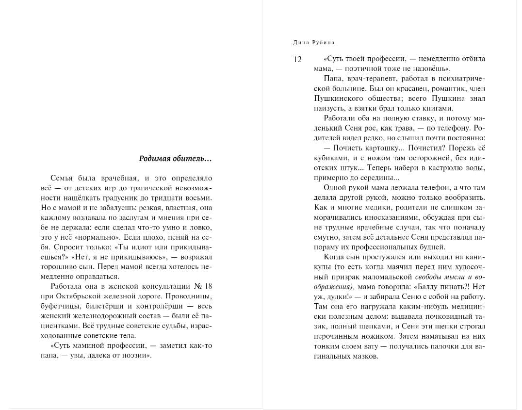 Роман «Маньяк Гуревич» не зря имеет подзаголовок «жизнеописание в картинках» – в нем автор впервые соединил две литературные формы: протяженный во времени роман с целой гирляндой «картинок» о докторе Гуревиче начиная с раннего его детства и по сегодняшний день: забавных, нелепых, трогательных, пронзительных, грустных или гомерически смешных. Благодаря этой подвижной конструкции книга «легко дышит». Действие мчится, не проседая тяжеловесным задом высокой морали, не вымучивая «философские идеи», не высиживая героев на котурнах, чем грешит сейчас так называемая «серьезная премиальная литература». При этом в романе Дины Рубиной есть и глубина переживаний, и острота ощущений человеческого бытия.
