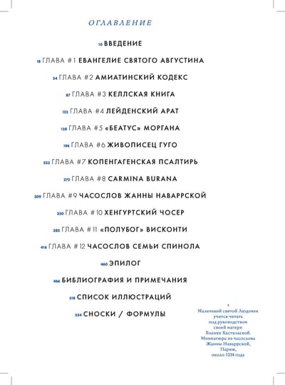 Это увлекательное исследование двенадцати иллюминированных рукописей. Известный историк Кристофер де Амель приглашает читателя на задушевную беседу со средневековыми текстами, чтобы узнать то, что они говорят нам о почти тысячелетней истории, а также о современном мире. Амель знакомит нас с королями, королевами, святыми, писцами, художниками, библиотекарями, ворами, торговцами и коллекционерами. Он приглашает читателей в полные увлекательных подробностей путешествия, проделанные этими невероятно ценными артефактами во времени, и показывает нам, как их копировали, как они были тесно переплетены с политикой, как их считали предметами высочайшей красоты и символами национальной идентичности и кто владел или жаждал обладать ими (и как мы сейчас можем это узнать и определить). Книга выходит при поддержке электронного академического научного журнала «Vox medii aevi».