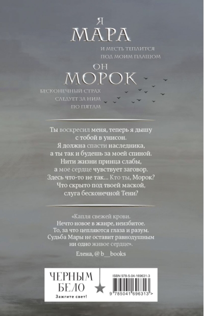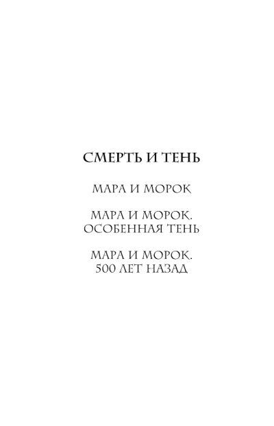 «Мара и Морок» — коктейль из темного фэнтези, young adult романа и славянской мифологии. Захватывающий сюжет, необычный сеттинг, повествование в двух временах, любовная линия и заговоры. История воскресшей Мары, избранницы самой богини смерти, и Морока, слуги Тьмы, воскресившего ее.