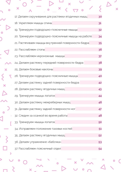 Постоянно чувствуете себя уставшей? Под конец дня нет ни сил, ни настроения? Значит, вам нужно обратить внимание на свою осанку! Современный малоподвижный образ жизни приводит к тому, что человек начинает сутулиться практически постоянно. Из-за этого появляются боли в спине, ухудшается кровообращение, нарушается работа внутренних органов, и человек быстро устает. Регулярно выполняйте комплекс простых и эффективных упражнений и через 55 дней вы сможете: исправить осанку, избавиться от боли в спине и шее; укрепить мышцы; улучшить свой внешний вид и восполнить запасы энергии.