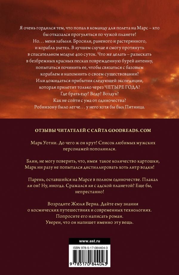 В лучшем случае я смогу протянуть в спасательном модуле 400 суток. Что же делать – разыскать в безбрежных красных песках поврежденную бурей антенну, попытаться починить ее, чтобы связаться с базовым кораблем и напомнить о своем существовании? Или дожидаться прибытия следующей экспедиции, которая прилетит только через ЧЕТЫРЕ ГОДА?