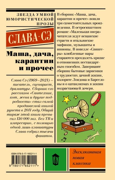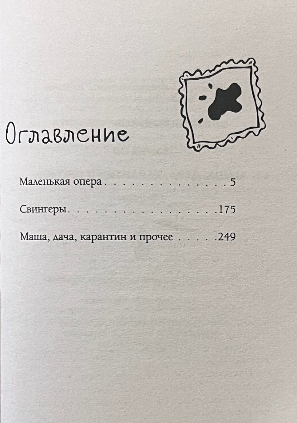 В сборник «‎Маша, дача, карантин и прочее»‎ вошли три самостоятельных произведения. В остросюжетном романе «‎Маленькая опера»‎ читателя ждут испанские страсти и итальянские мафиози, музыканты и шпионы. В новелле «‎Свингеры»‎ влюбленные пары стараются преодолеть кризис в отношениях нестандартным способом. Завершают сборник бытовые зарисовки о трудностях дачной жизни, колорите Лондона и Барселоны и о катаклизмах в жизни подрастающей дочери.