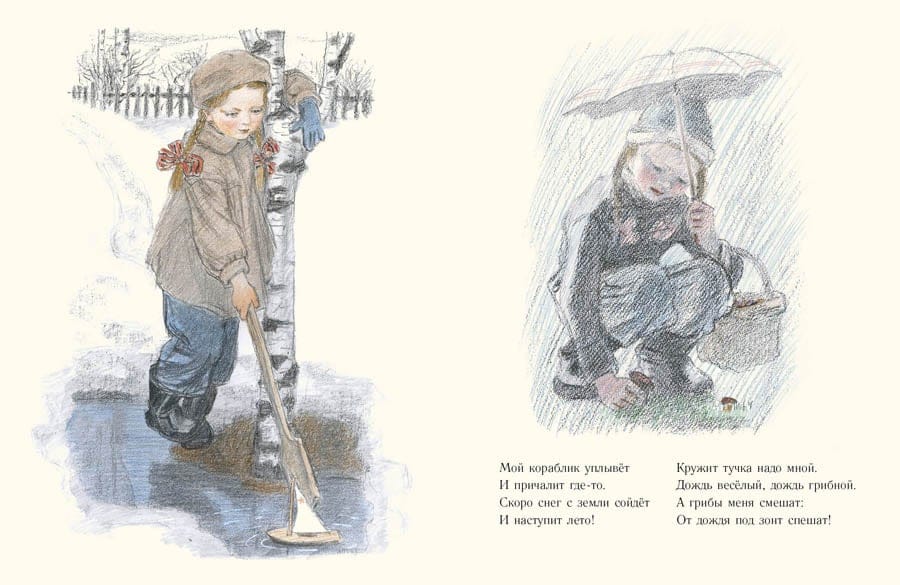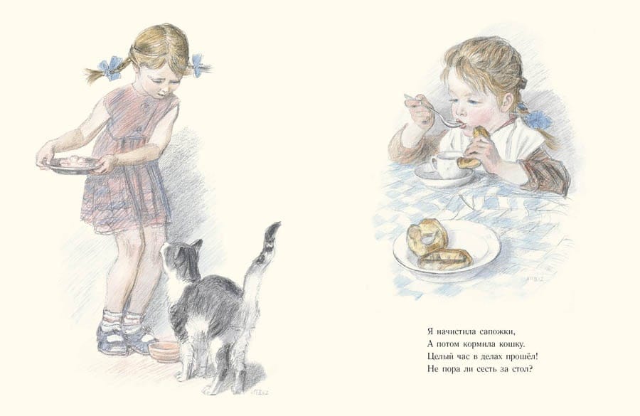 Сколько у Машеньки занятий! Девочка не сидит без дела: сама умывается, чистит сапожки, кормит кошку и шьёт платье для куклы. И даже освободившись от забот, маленькая непоседа даром времени не теряет: собирает грибы, ловит бабочек и учится кататься на велосипеде. Весёлые и добрые строки Галины Новицкой сопровождают лёгкие и динамичные иллюстрации Алексея Пахомова - одного из талантливейших отечественных художников детской книги, которому блестяще удавалось воплощать на бумаге живые, искренние и непосредственные детские образы.