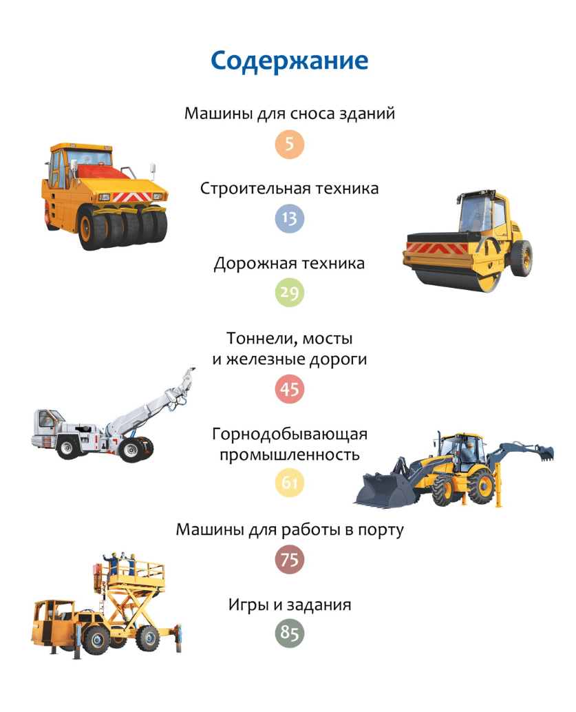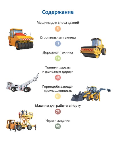 Эта книга расскажет о строительной технике – от грейдера и мини-погрузчика до гигантских карьерных самосвалов. Юные читатели узнают, какие машины участвуют в сносе зданий, как роют подземные тоннели и шахты, как укладывают рельсы и возводят самые большие в мире мосты. В книге представлены уникальные виды техники, которые используют в горах, в порту и на дне океана, на высоте небоскрёба и заснеженных трассах. В книгах серии – только самая актуальная информация и самые современные иллюстрации! И это ещё не всё: в конце каждой книжки собраны увлекательные задания и игры, которые помогут весело провести время и повторить изученное.