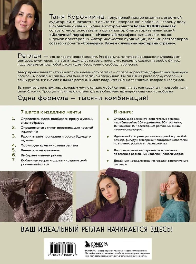Эта книга — не сборник описаний, а настоящий конструктор бесшовных плечевых изделий, связанных на спицах регланом сверху вниз.