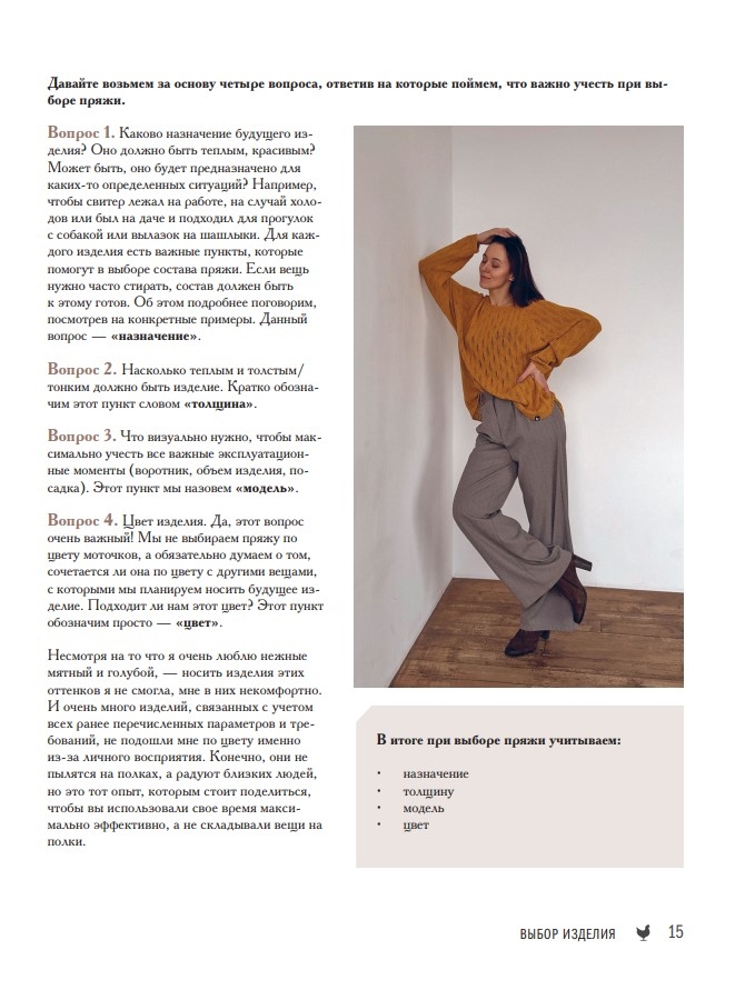 Вы научитесь видеть логику вязания, понимать конструкцию, строить ее под себя и чувствовать уверенность мастера, который владеет процессом от первой петли до последней.