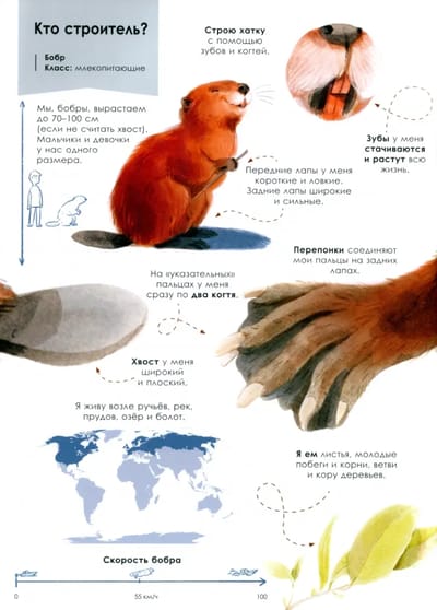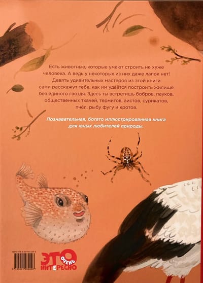 Животным, как и людям, нужен дом. Они выбирают для этого подходящее место – укромное, безопасное, чтобы никто их не беспокоил. Некоторые устраиваются высоко на дереве, некоторые под землёй. Одни строят из земли и веточек, другие из лёгкой паутины, а третьи – из песка... У каждого строителя свой неповторимый почерк. Есть животные, которые живут поодиночке, а есть любители большого, шумного общества. Гнёзда, туннели, ловчие сети, плотины – узнай, на что способны мастера-строители.
