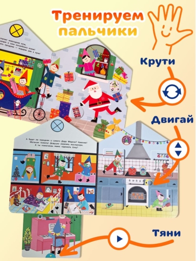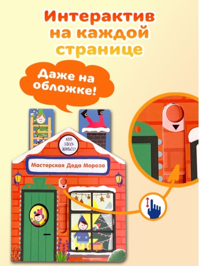 В этой интерактивной книжке-игрушке много сюрпризов: малыш сможет заглянуть в каждую комнату домика и узнать, куда приходят письма для Дедушки Мороза, как делаются подарки и кто их доставляет. А ещё приготовить новогоднее угощение!
