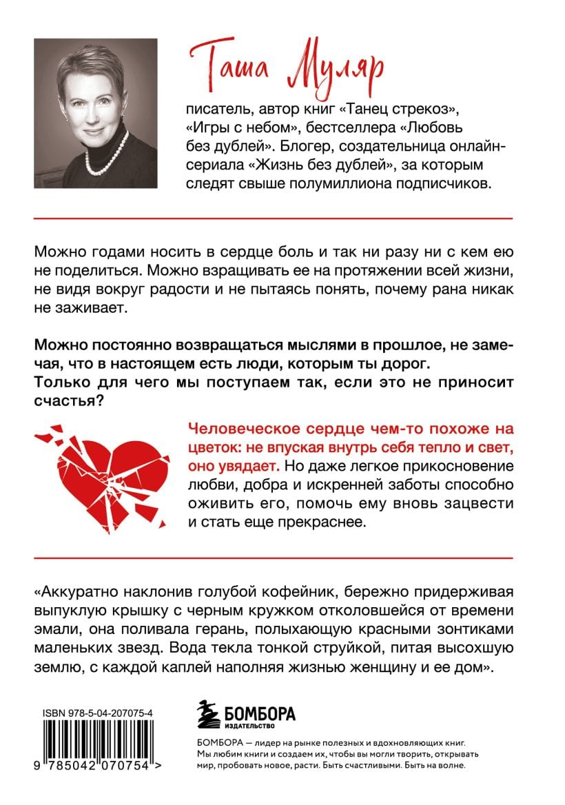 Почему мы так редко говорим тем, кто нам по-настоящему дорог, что любим их, и почему чаще замечаем плохое? Почему цепляемся за иллюзии, вместо того чтобы жить настоящим? Почему боимся открыть сердце, хотя страдаем от одиночества? Вместе с героями Таши Муляр вам предстоит разобраться в непростых жизненных ситуациях, и, возможно, среди историй найдется та, что поможет вам по-новому взглянуть на собственные отношения и проблемы.