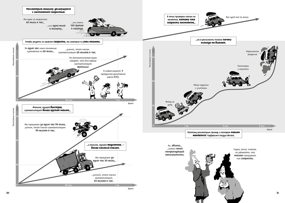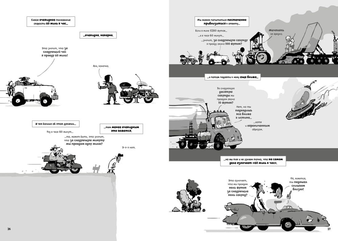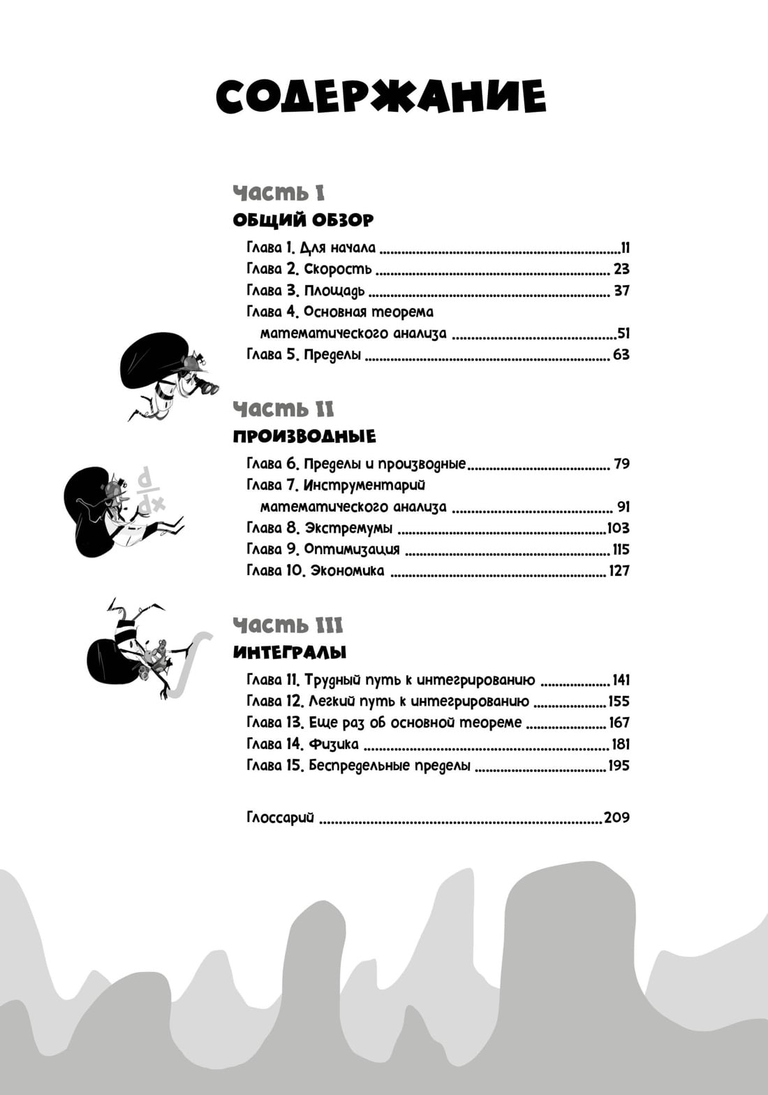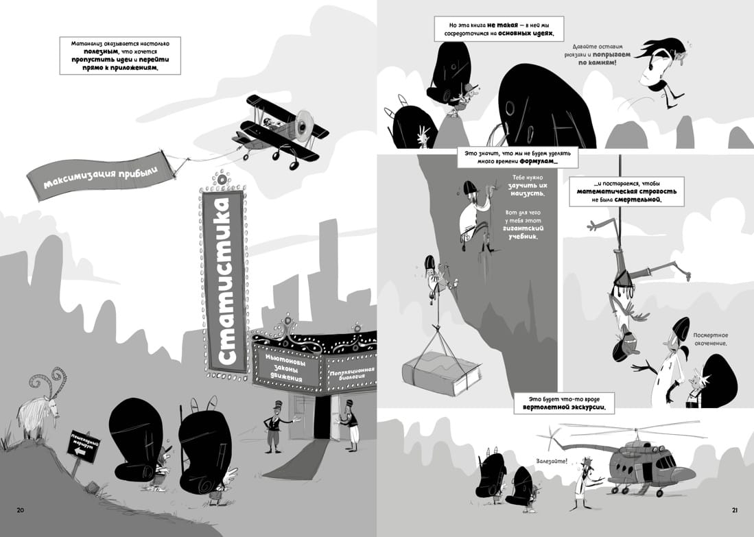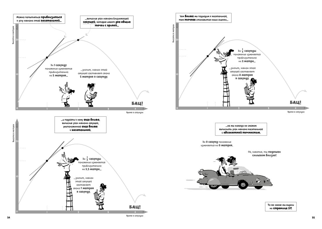 Известный художник-комиксист Грейди Клейн и единственный в мире экономист-юморист Йорам Бауман станут нашими проводниками в восхождении на пики горы Производная и горы Интеграл. С этих вершин мы увидим, как матанализ связан с другими областями математики. Начав с задач на измерение скорости и определение площади, авторы показывают, как основная теорема матанализа связывает воедино эту дисциплину. Мы встретимся с гениями — Архимедом, Лю Хуэем и Бонавентурой Кавальери, — которые выжили на этих горных склонах благодаря своей смекалке и подготовили нас к встрече с опасными лавинами, вызванными математической строгостью. Продолжим свой путь, проберемся сквозь пределы и экстремумы, оптимизацию и интегрирование, и узнаем, как применять матанализ в экономике, физике и во многих других областях. Обнаружим, что матанализ вовсе не высочайшее достижение математики, но его инструменты лежат в основе всего того, что было достигнуто в дальнейшем. Увлекательный научно-популярный комикс снабжен Глоссарием, позволяющим легко ориентироваться в основных терминах. Прочитав эту книгу, вы станете в 2,8284271 раза умнее!