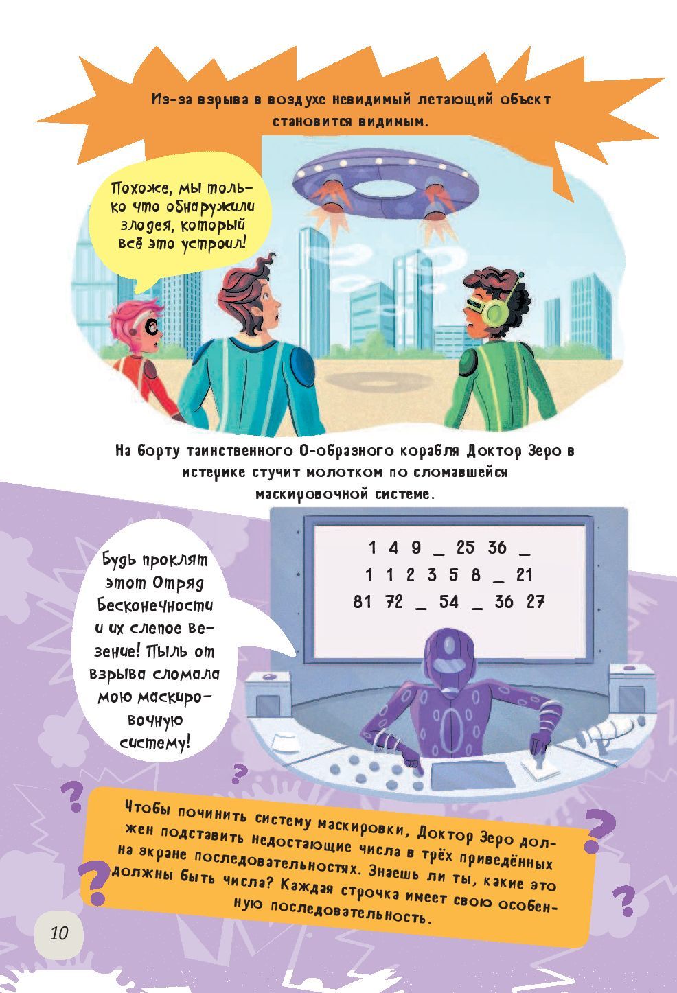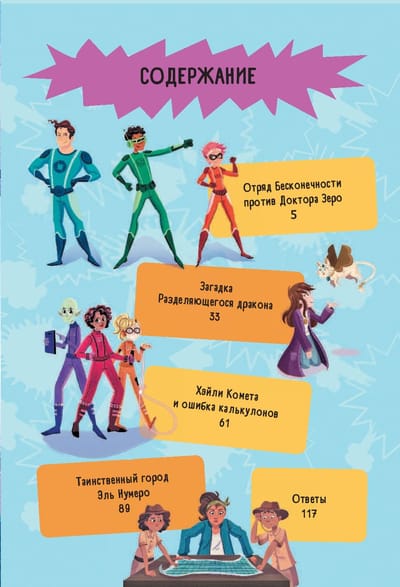 Помоги Отряду Бесконечности спасти город от злодея, вместе с волшебницей Анной Кадаброй раскрой таинственное исчезновение драгоценных камней из музея, отправляйся в космос вместе с командой отважного капитана Кометы и исследуй таинственный город Эль Нумеро.