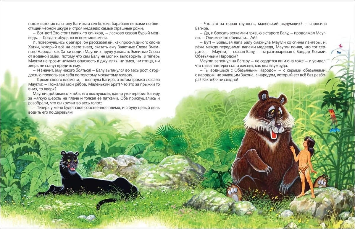 Весь мир знает про Маугли, индийского мальчика, воспитанного в волчьей стае. Этой истории уже более ста лет, однако интерес читателей к судьбе человеческого детеныша ничуть не ослабевает. Мудрый волк Акела, добродушный медведь Балу, отважная пантера Багира все учителя и верные друзья Лягушонка Маугли готовы поведать о Законе джунглей каждому, кто откроет эту книгу. Иллюстрации Виктора Нечитайло.