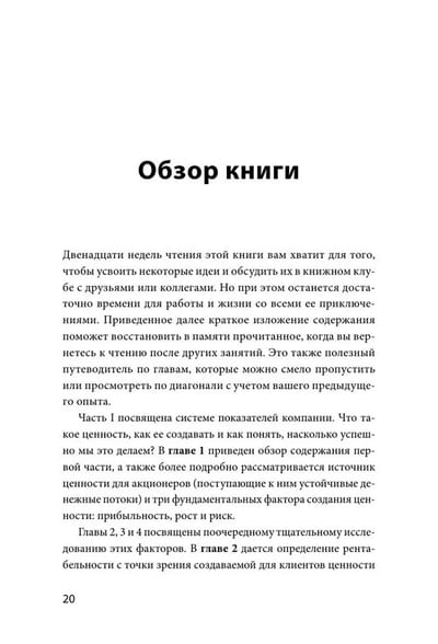 Информация, представленная в книге, посвящена двум важнейшим бизнес-категориям: как компания использует финансовые данные для определения и измерения ее ценности и как она управляет людьми для создания этой ценности, а также хрупкому балансу этих категорий.