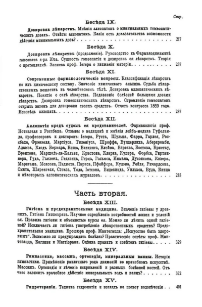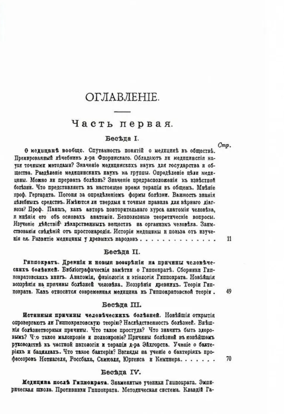 В своих трудах автор изложил историю медицины от Гиппократа до конца ХІХ века и представил собственный многолетний научный и практический опыт лечения и оздоровления. Воспроизведено по изданию 1891 года (Медицинские беседы / Л. М. Чичагов. - М. : Типо-лит. Высоч. утвер. Т-ва «И. Н. Кушнерев и К», 1891. - 680 с.).