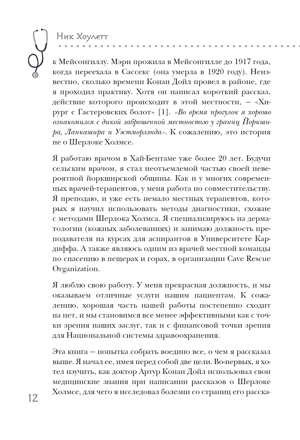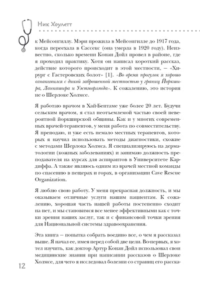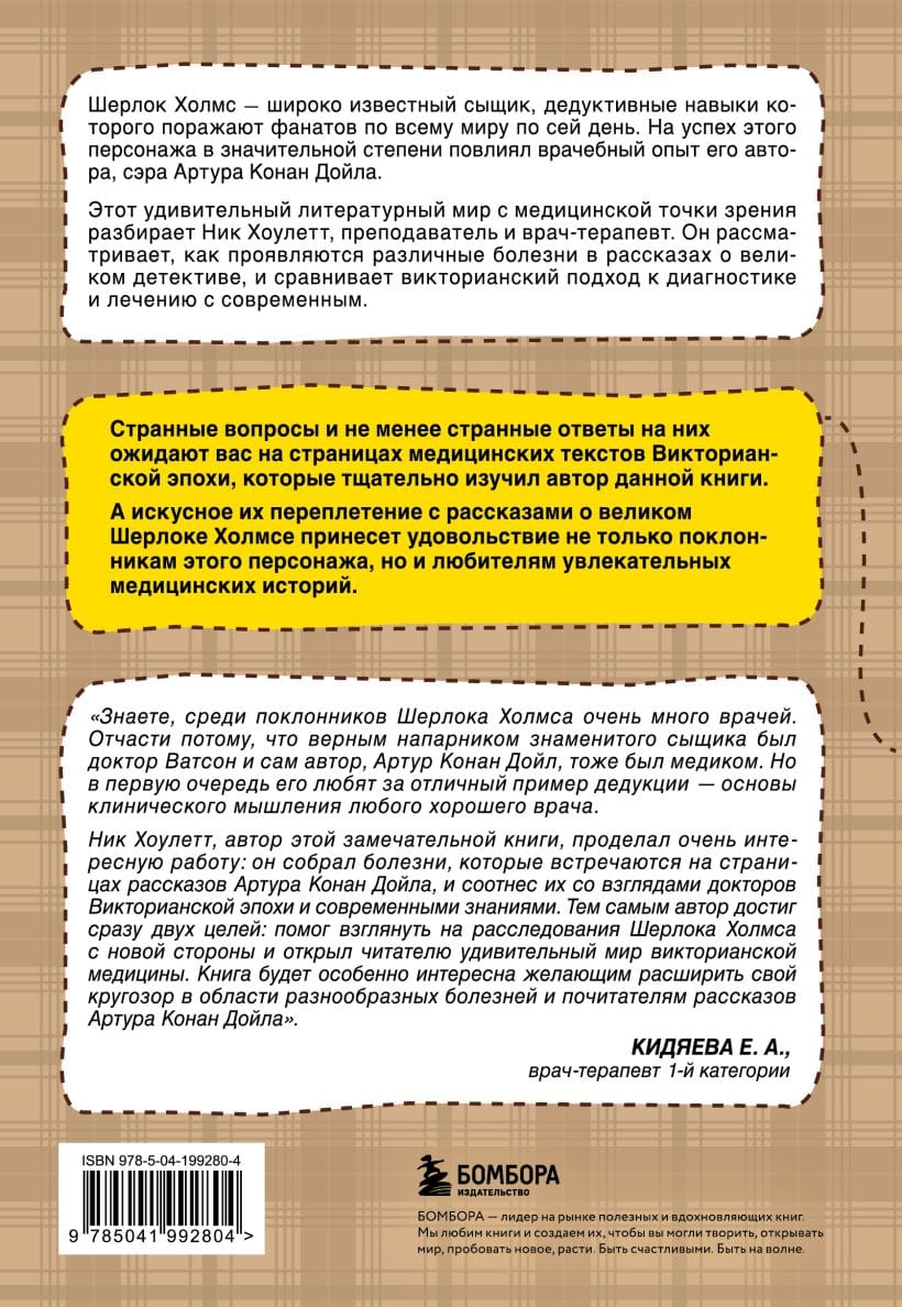 Ангина, астма, депрессия — довольно распространенные в современном мире болезни. А что насчет ихтиоза, апоплексии или люмбаго? Со всеми этими заболеваниями сталкивался не кто иной, как всемирно известный и всеми любимый детектив Шерлок Холмс. При написании великих произведений Сэр Артур Конан Дойл использовал свой реальный врачебный опыт, который он передал обитателю квартиры на Бейкер-стрит. А Ник Хоулетт, врач-терапевт, выросший на рассказах о великом сыщике и вдохновленный карьерой известного писателя, смог составить обширный список из 50 недугов, упомянутых в произведениях английского писателя.