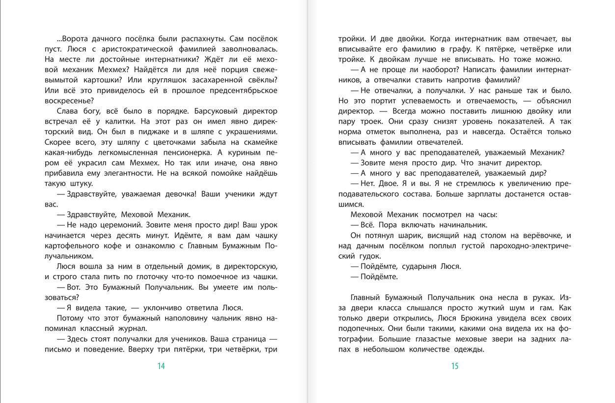 В одном дачном посёлке открылся необычный интернат — Меховой. Пушистые ученики этого суперсекретного заведения каждый день ходят на уроки и получают оценки, прямо как настоящие школьники. А кто их учит? Директор Мехмех и ученица четвёртого класса Люся Брюкина. Прочитайте эту весёлую повесть Эдуарда Успенского и вы сами захотите за парту к озорным ученикам — ласке, волку, белке и другим зверятам.