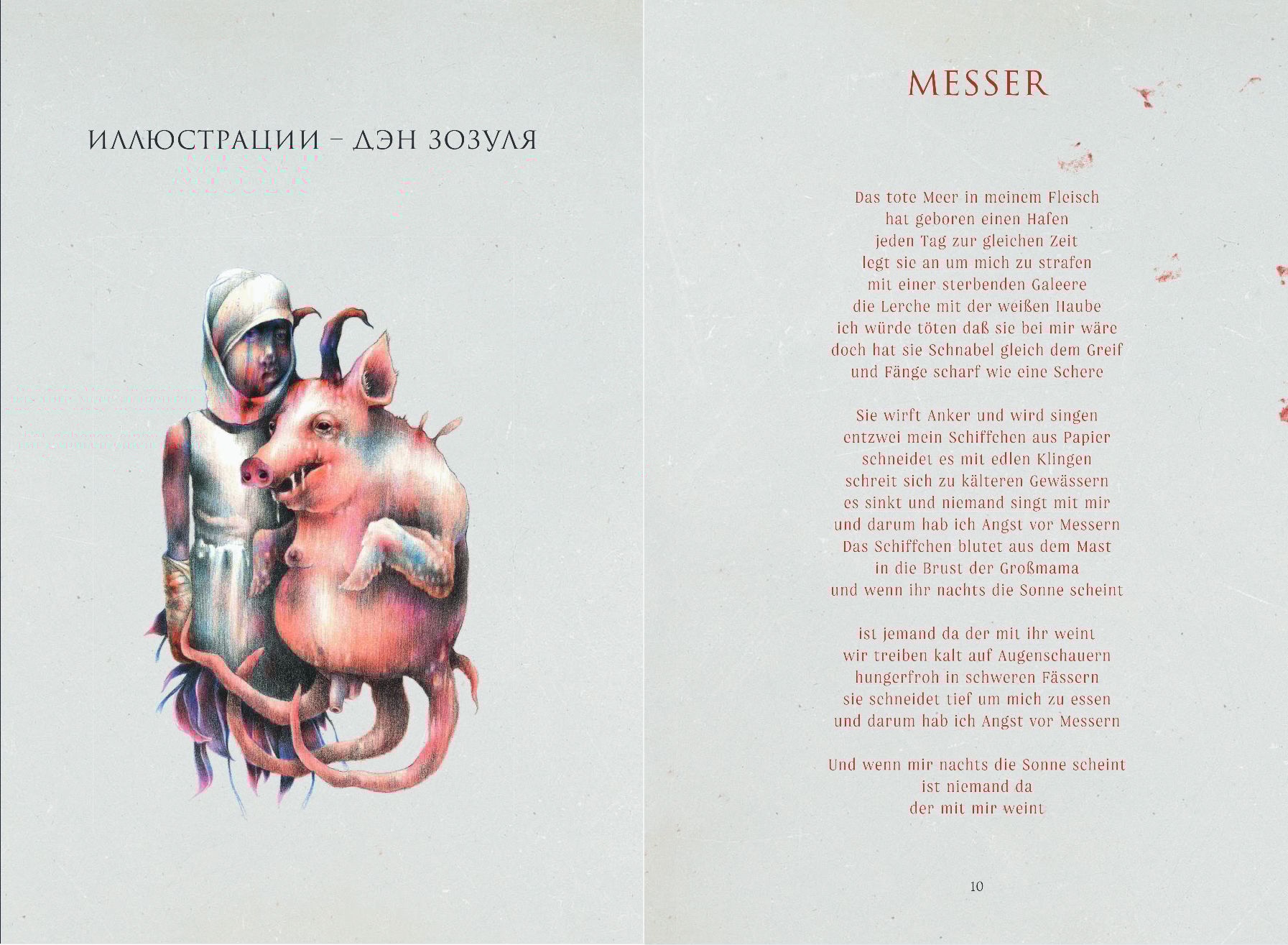 Сборник составлен из стихотворений на двух языках, немецком и русском, а иллюстрации на разворотах выполнены Дэном Зозулей.