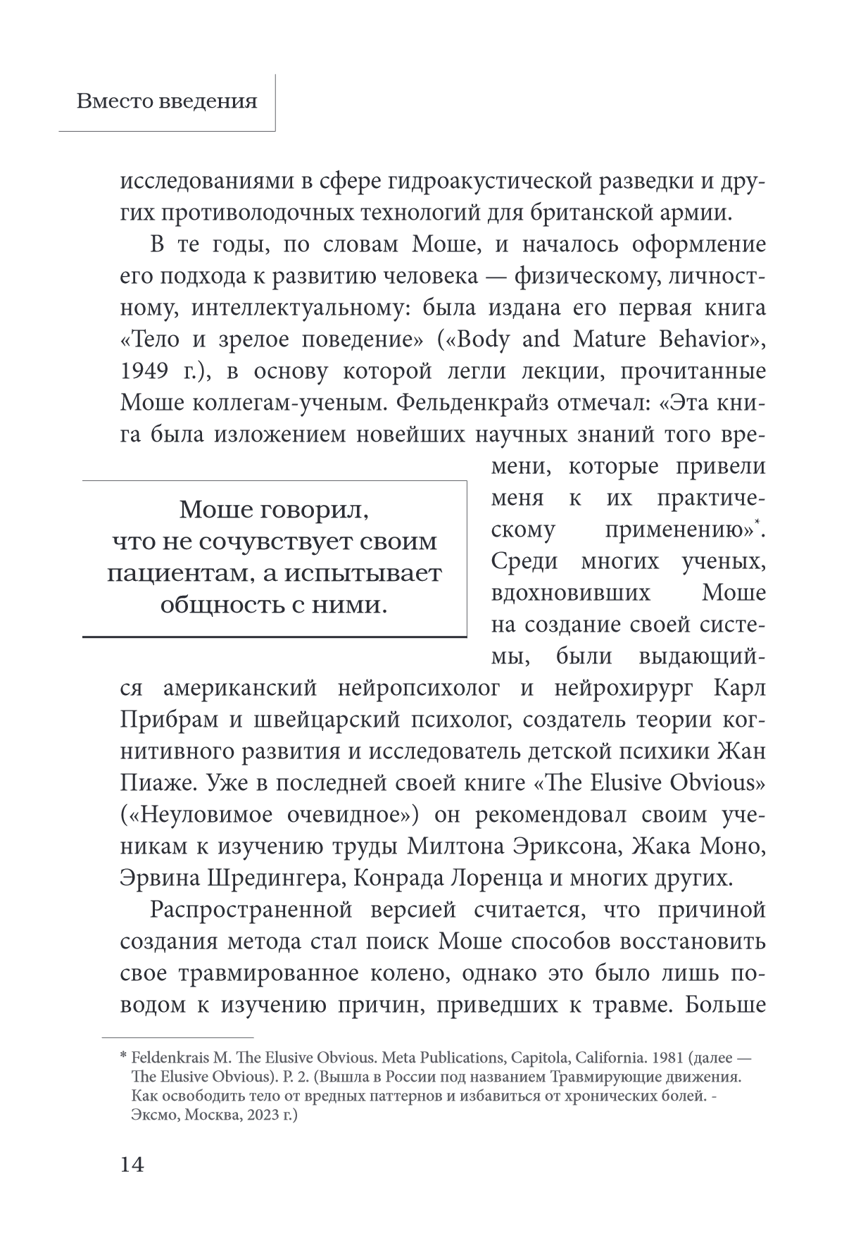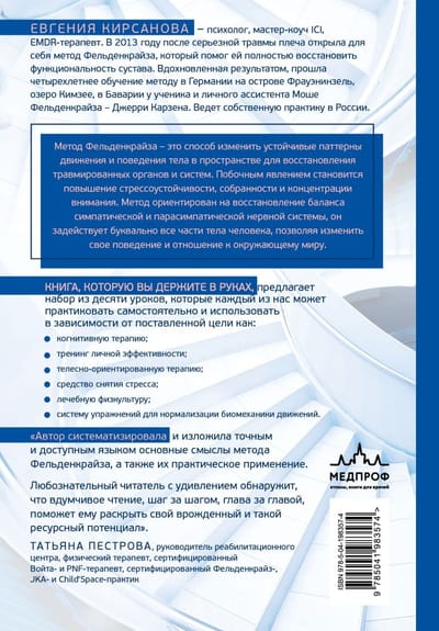 Автор, ученица школы Фельденкрайза, рассказывает, как возможно применить Метод Фельденкрайза на практике и добиться улучшения эмоционального, когнитивного, физического качества жизни, достигаемого за счёт раскрытия человеком своего врождённого потенциала.