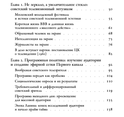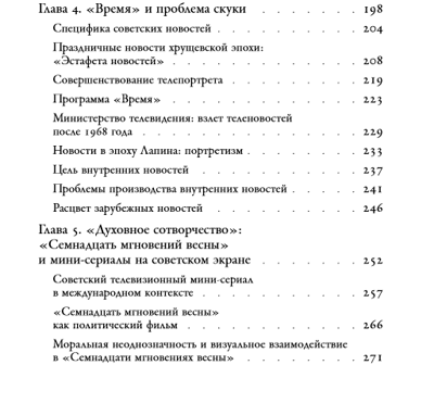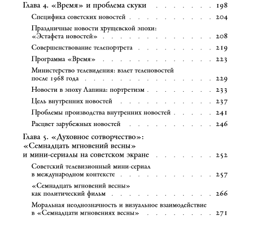 Существует расхожее представление, что советская массовая культура в эпоху Брежнева была скучной и шаблонной. Кристин Эванс в своем исследовании советского центрального телевидения, основанном на обширных архивных источниках, интервью и телевизионных записях, ставит под сомнение этот тезис. Автор прослеживает историю Центрального телевидения в Советском Союзе с середины 1960-х до начала 1980-х годов, анализирует советские новостные программы, многосерийные фильмы и игровые шоу и выявляет в них проявления игры, конфликта и соперничества. Исследовательница демонстрирует, что самые популярные передачи советского центрального телевидения были экспериментальными и творческими; по ее мнению, они заложили основу для реформ Михаила Горбачева и постсоветской системы СМИ, а также подготовили и предвосхитили эру российского телевидения. Кристин Эванс — доцент Департамента истории Висконсинского университета в Милуоки.