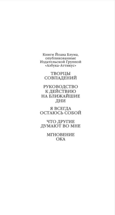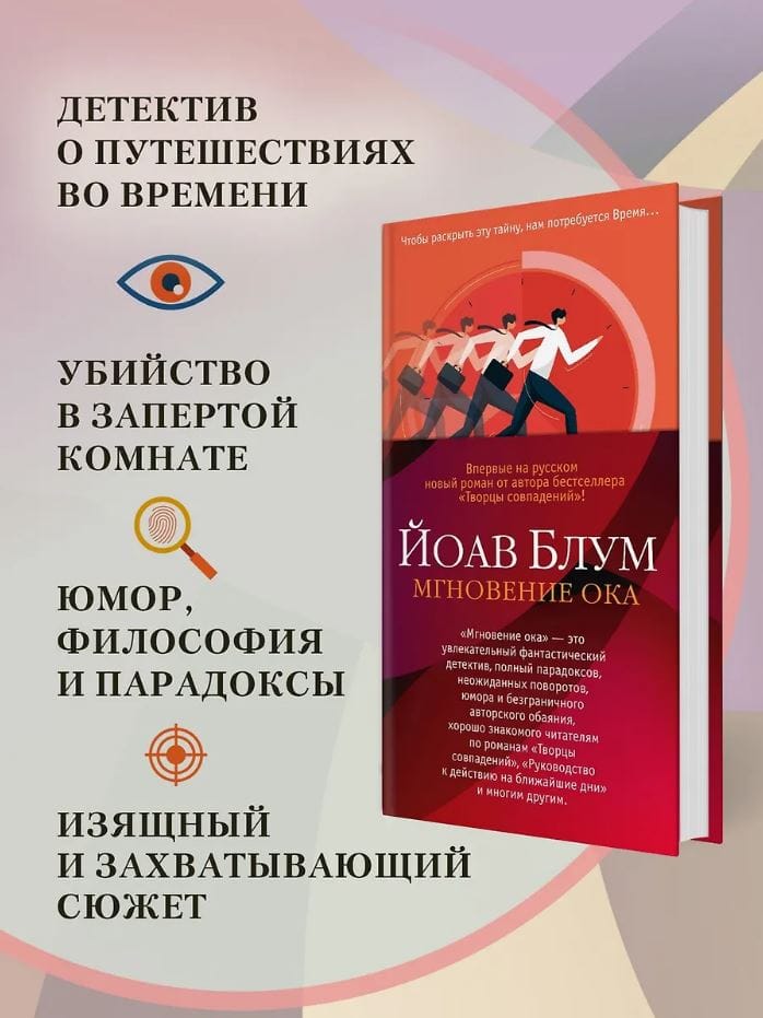 «Мгновение ока» — это увлекательный фантастический детектив, полный парадоксов, неожиданных поворотов, юмора и безграничного авторского обаяния, хорошо знакомого читателям по романам «Творцы совпадений», «Руководство к действию на ближайшие дни» и многим другим.