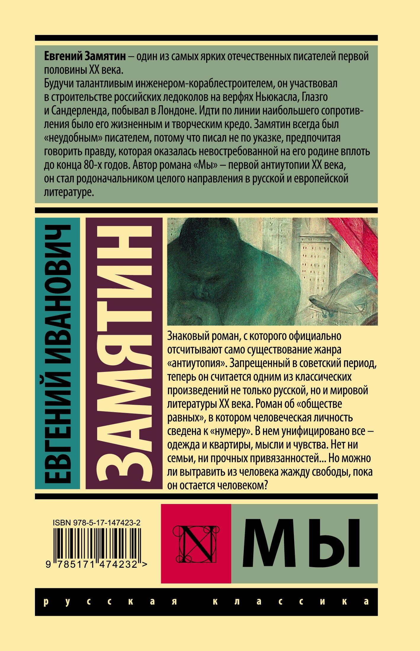 Знаковый роман, с которого официально отсчитывают само существование жанра «антиутопия» Запрещенный в советский период, теперь он считается одним из классических произведений не только русской, но и мировой литературы ХХ века. Роман об «обществе равных», в котором человеческая личность сведена к «нумеру». В нем унифицировано все — одежда и квартиры, мысли и чувства. Нет ни семьи, ни прочных привязанностей...